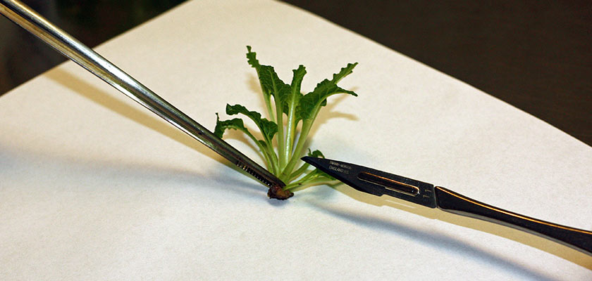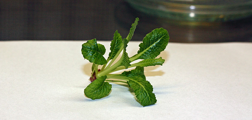 Single plant ready to transfer on rooting medium. -